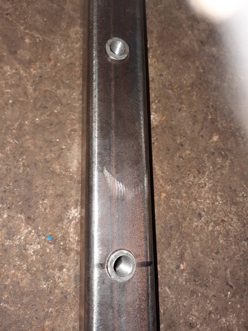 The first car - a Robin Hood Lotus style thing had 4 point harnesses that secured to a bar that went across the back of the car. It was mounted at the right height but the tubes that the seat belt mounts went in to were just welded on to the side of the cross bar. Although the first tester passed it like that, when it went for retest the second tester told me he would have failed it - the testing manual is littered with the prase "if in the tester's opinion", which means that there will always be discussion about vagaries as to whether something looks strong enough or not. This time around I am leaving no doubt- the main cross bar is 40mm square tube with 3mm thick walls, I have drilled it to take 16mm diameter tubes that have been drilled and tapped to 7/16 UNF, they will be welded at both ends.