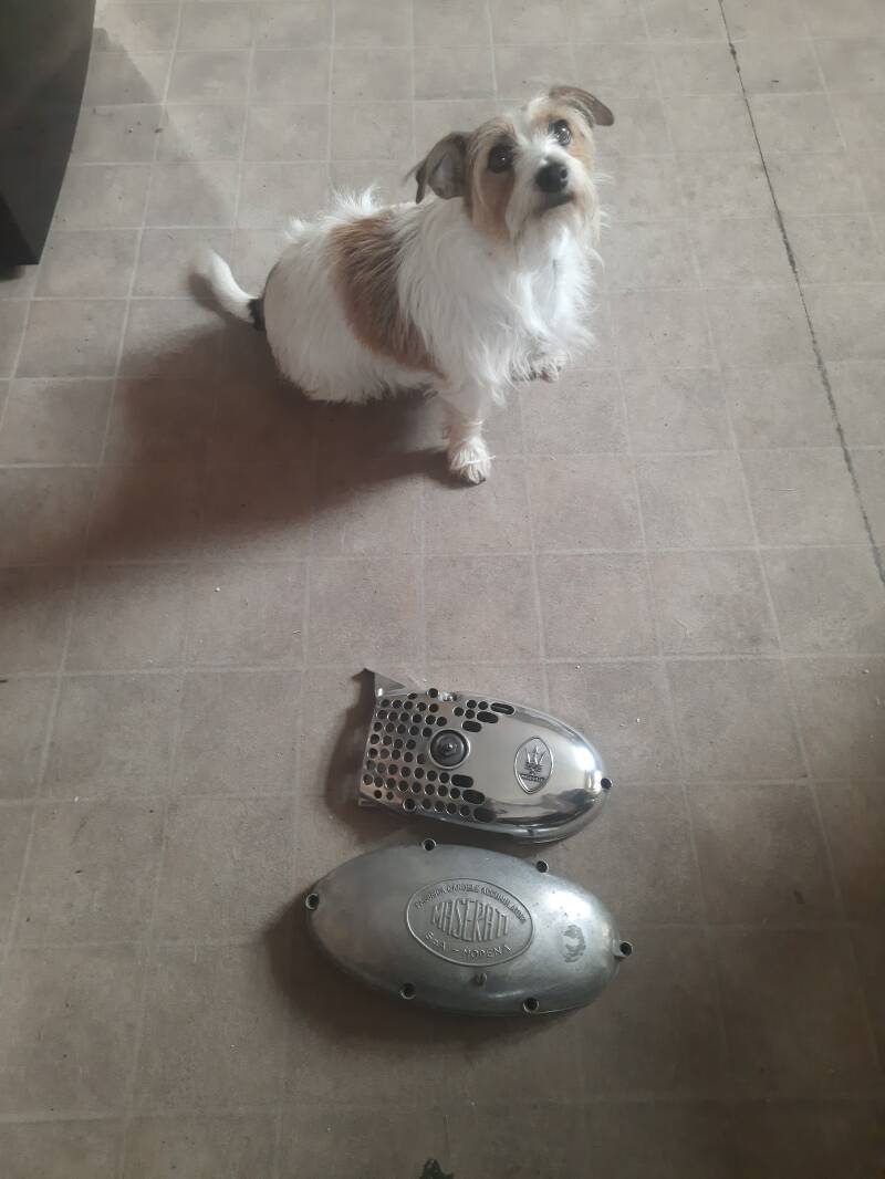 The dog is appreciating my work, she likes the comparison between the side that is done and the side that is as I got it. She wants me to do her food bowl next.