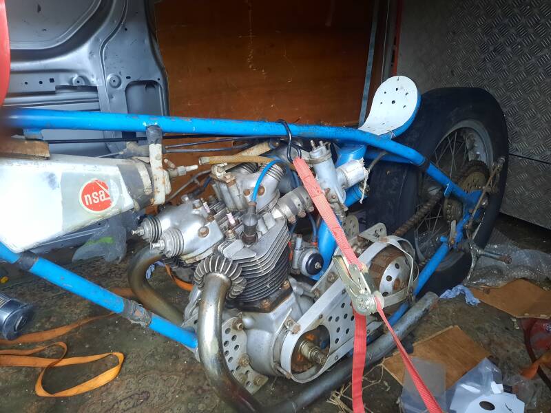 my thinking behind this one is that historical race events have become very popular in recent years so there should be a ready market for it once it's back to full health. Failing that it will be a super cool man cave ornament. If neither of those work out it will be a different sort of drag bike as Mrs will use it to drag me through the streets of Boston.